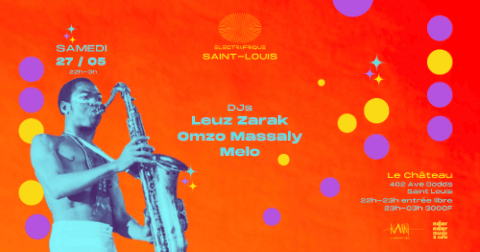 En marge du festival de Jazz, les équipes ElectrAfrique et Ndar Ndar Music & Café vous proposent une soirée aux saveurs de musique électronique panafricaine. Dj Leuz Zarak Dj Omzo Massaly viennent spécialement de Dakar pour vous faire kiffer avec une ambiance dont eux seuls ont le secret. Special guest : Dj Melo !!! Originaire de Saint Louis, il vous fera kiffer sur des sonorités afrohouse et plus Lieu : Le Château 402 ave Dodds Saint Louis 3000F après 23h Free before